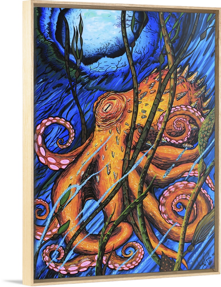 Art Blue Wall Art Contemporary Art Martin Nasim Painting Wildlife Marine Life Octopus and Squid