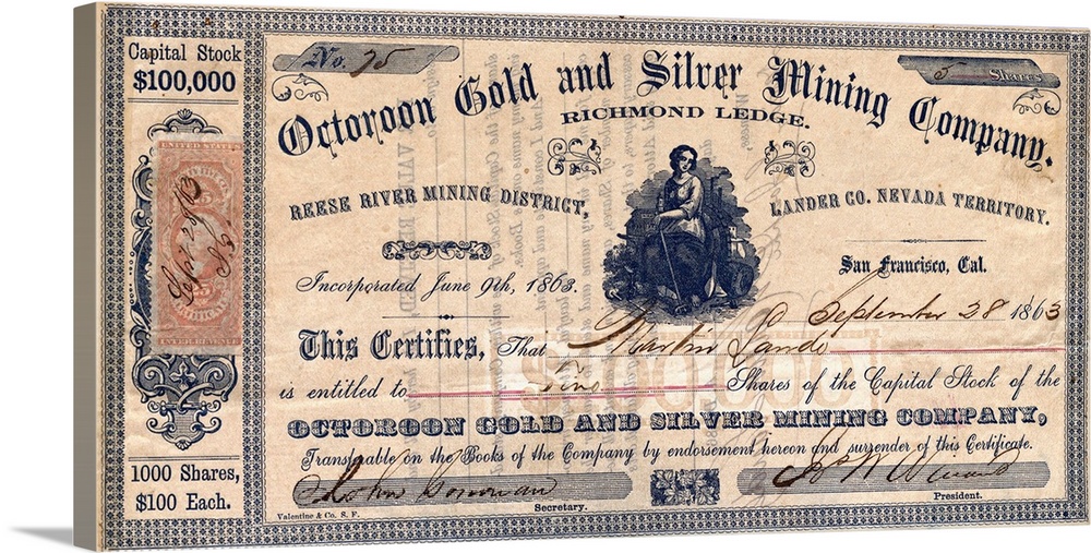 <p>Stock certificate for five Shares of the Octoroon Gold and Silver Mining Company sold on September 28, 1863, to Martin Sands for $500.</p>