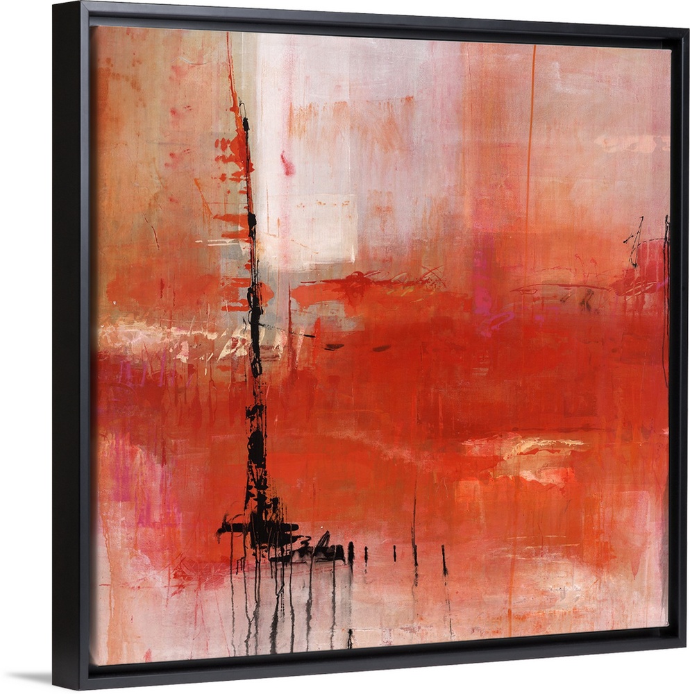 <p>Abstract painting of deep red and pale red tones, with a harsh black stroke off to the left.</p>
