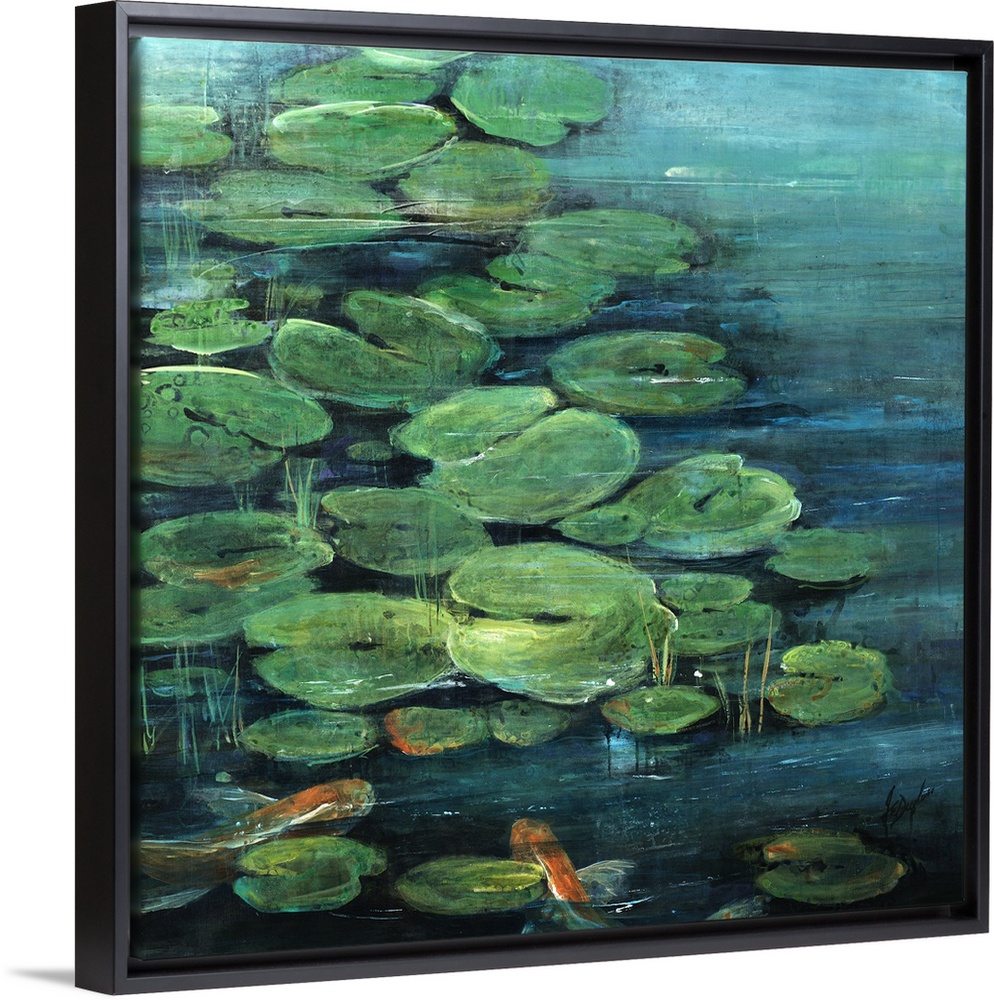 Art Transitional Contemporary Art Rivers, Lakes, and Oceans Farrell Douglass Florals Water Lily Green Wall Art Painting Wildlife Fish Koi