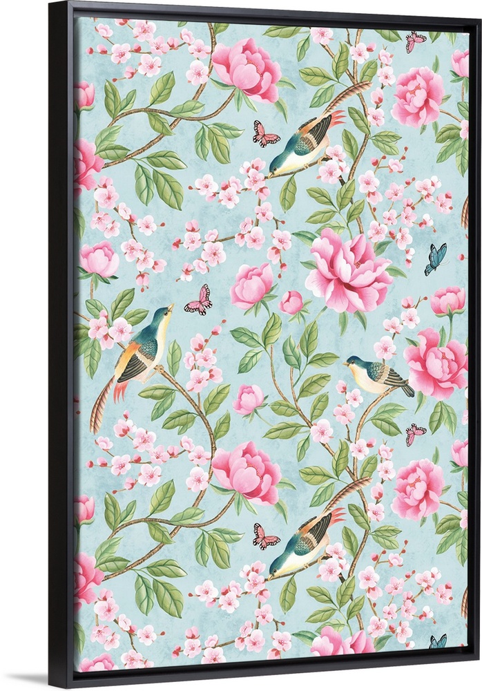 Art Blue Wall Art Chinoiserie Decorative Art Florals Painting Karolina Sato Wildlife Bird