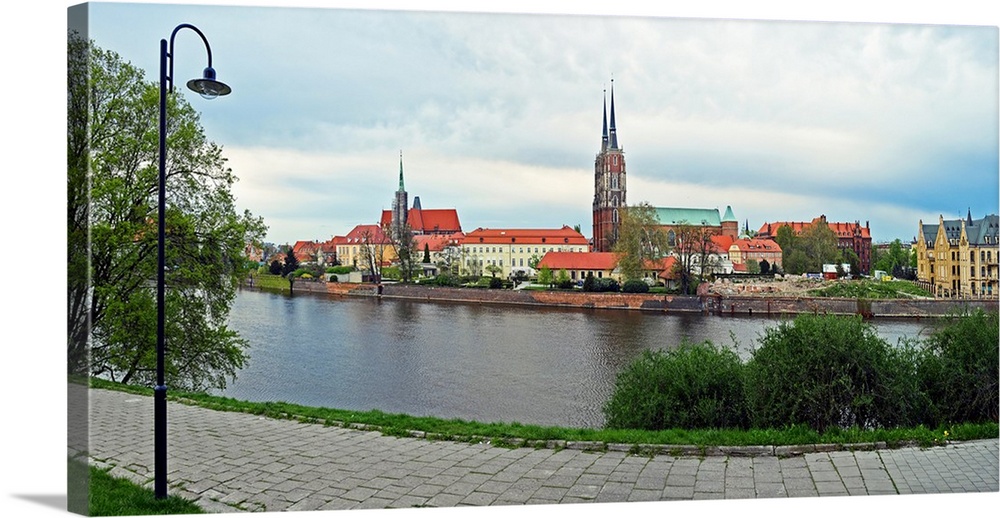 Oder River with a cathedral in the background, Wroclaw, Silesia, Poland