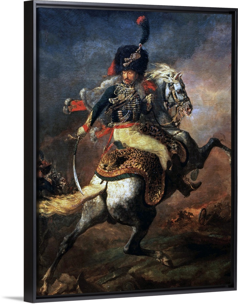 <p>XIR26088 Officer of the Hussars, 1814 (oil on canvas); by Gericault, Theodore (1791-1824); 349x266 cm; Louvre, Paris, France; French, out of copyright</p>