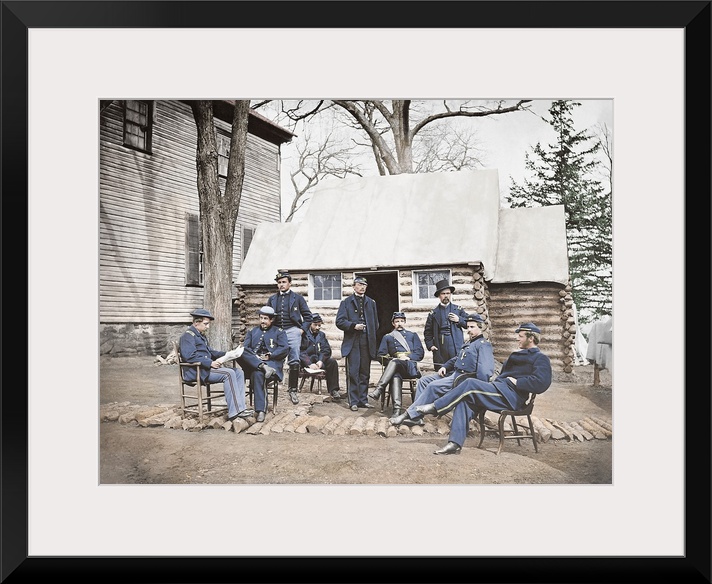 <p>Staff of Officers at Headquarters of 6th Army Corps, Winter of 1864 during the American Civil War. Capt. Henry W. Farrar - Aide De Camp., Captain Henry R. Dalton, Major General Wright. This photo has been digitally restored and colorized.</p>