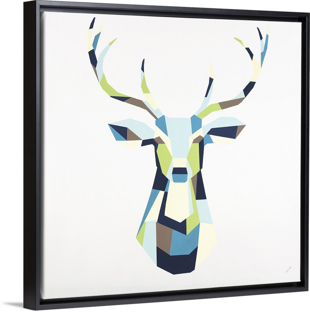 <p>Painting of a deer with antlers using geometric colored shapes.</p>