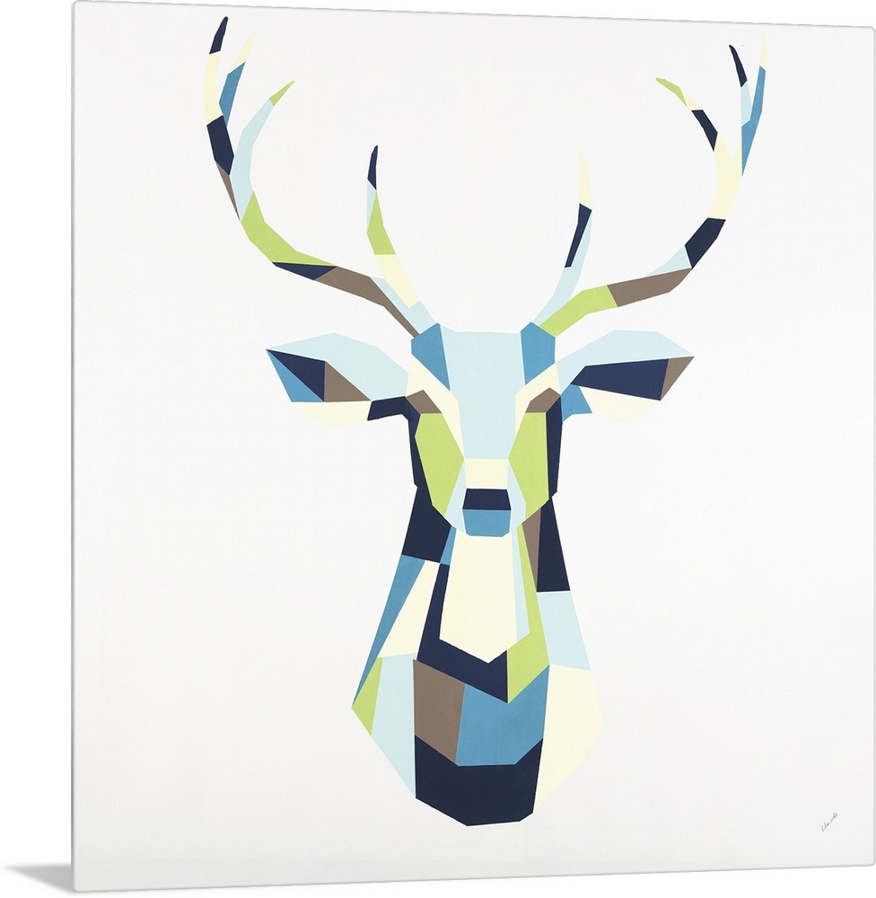 <p>Painting of a deer with antlers using geometric colored shapes.</p>