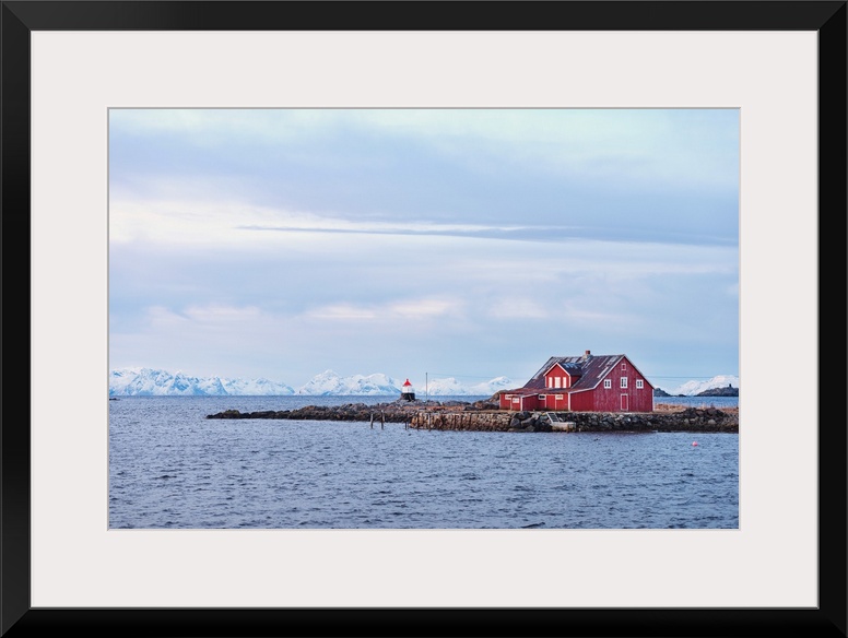<p>Fjord in Norway with a red wooden house</p>