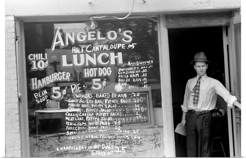 <p>Ohio, Columbus, 1938. Man Stands In the Entrance To A Lunchroom In Columbus, Ohio. Photograph By Ben Shahn, August 1938.</p>