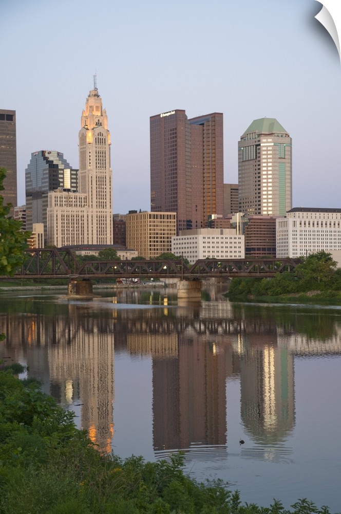 <p>USA, Ohio, Columbus: City skyline and the Scioto River.</p>