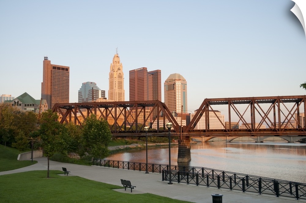 <p>USA, Ohio, Columbus: City skyline and the Scioto River.</p>
