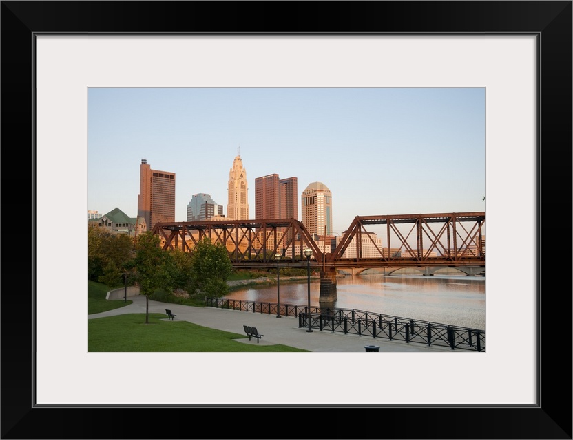 <p>USA, Ohio, Columbus: City skyline and the Scioto River.</p>