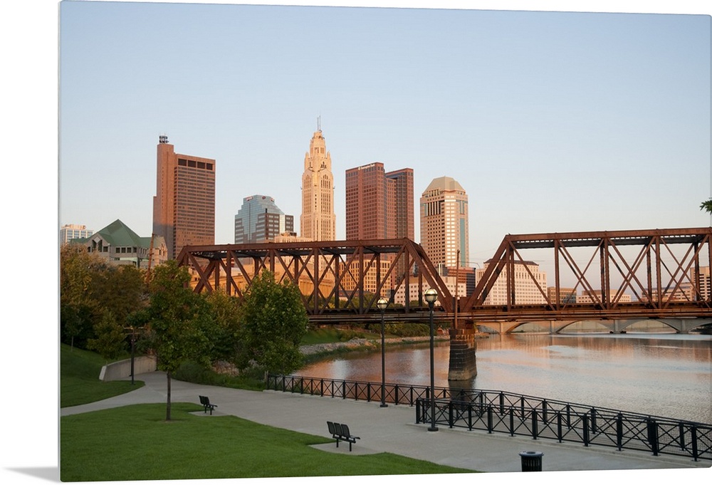 <p>USA, Ohio, Columbus: City skyline and the Scioto River.</p>