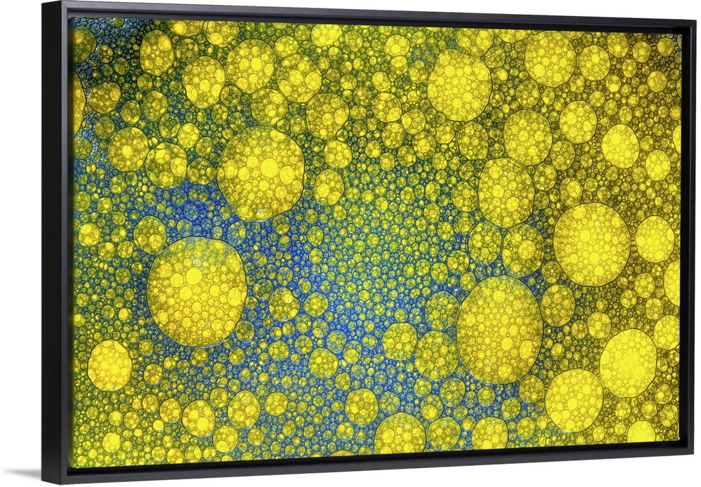 <p>Oil Bubbles macro/close-up with food colouring to make an abstract blue and yellow image.</p>