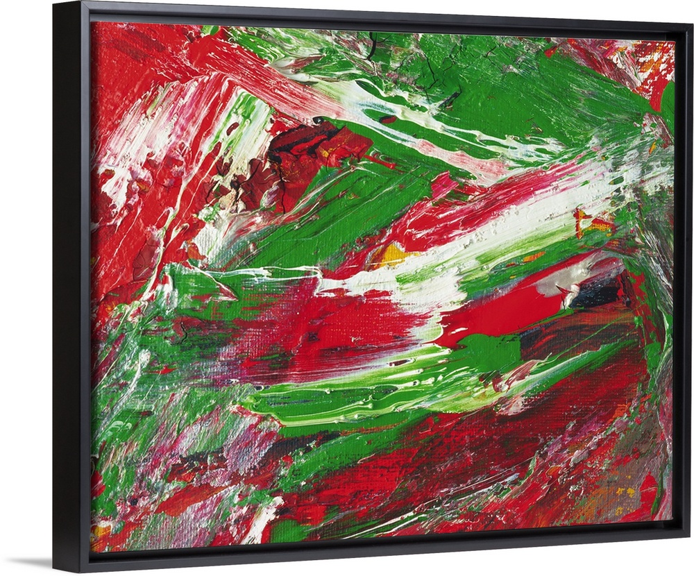 <p>Oil Painting in Red, Green and White Colors, Front View</p>