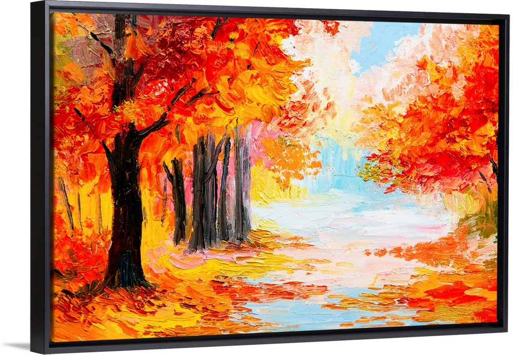 <p>Oil painting of a landscape in autumn foliage.</p>