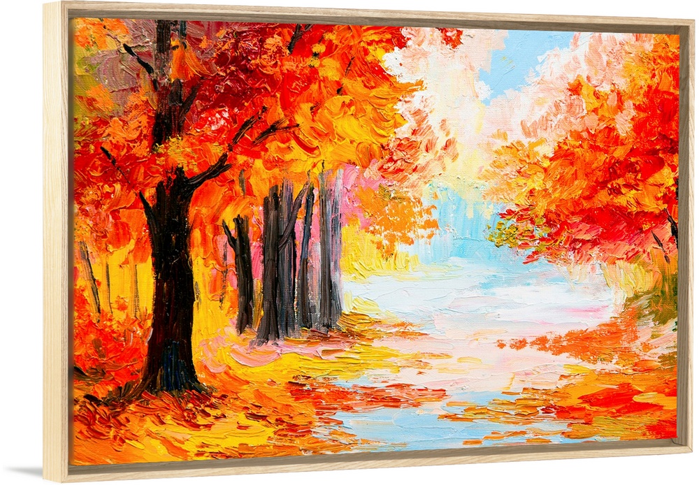 <p>Oil painting of a landscape in autumn foliage.</p>