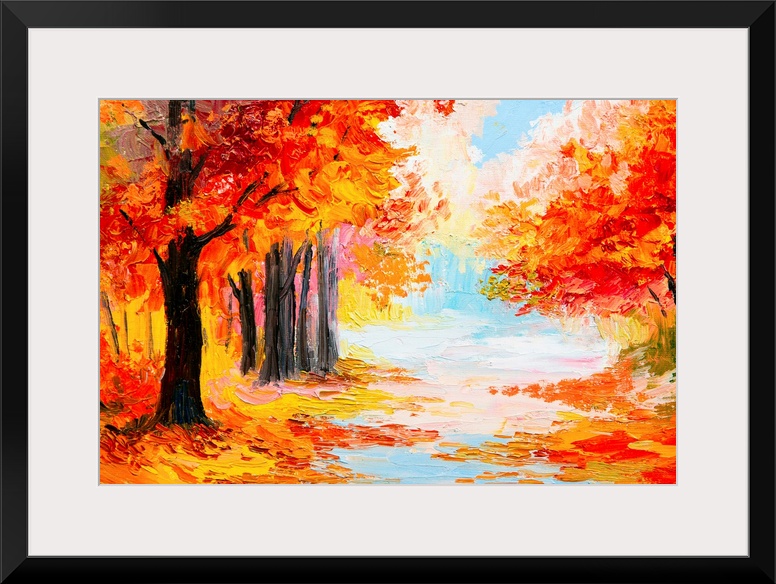 <p>Oil painting of a landscape in autumn foliage.</p>