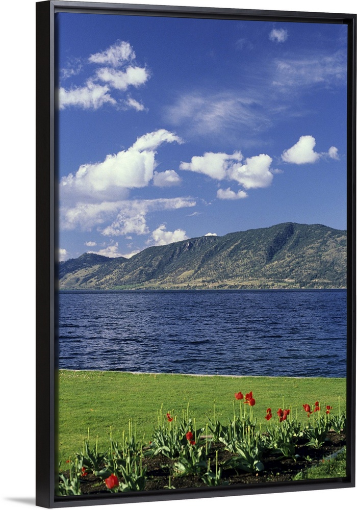 <p>Okanagan Lake near Kelowna, British Columbia...okangan lake, water, kelowna, british columbia, canada, grass, clouds, tulips, flowers, mountains, nature, scenic</p>