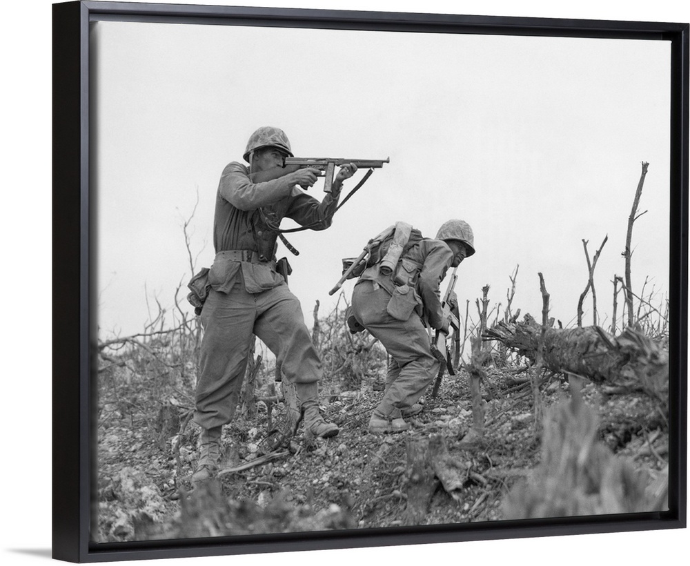 <p>A U.S. Marine takes aim at a Japanese sniper near the town of Shuri, Okinawa, 1945.</p>
