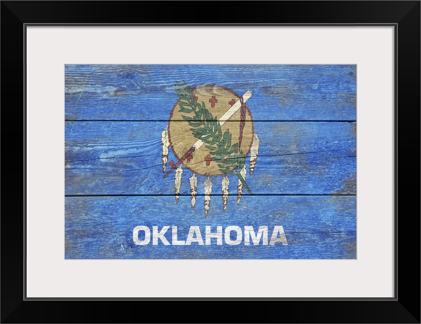 <p>The flag of Oklahoma with a weathered wooden board effect.</p>