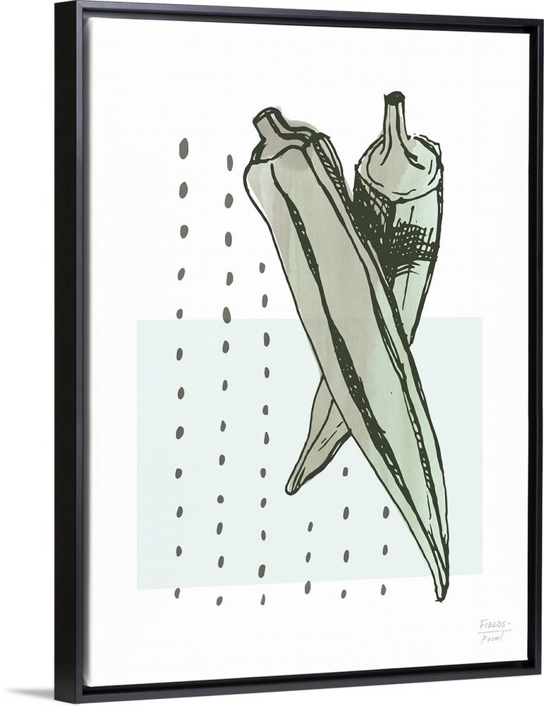 <p>Watercolor kitchen print with okra and abstract shapes in green.</p>