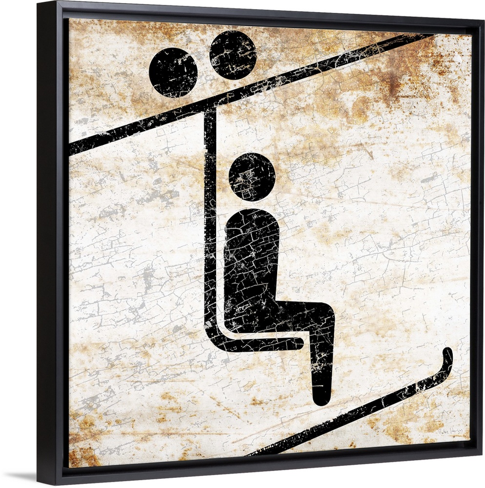 <p>A worn, distressed, cracked and rusty ski chairlift sign.</p>