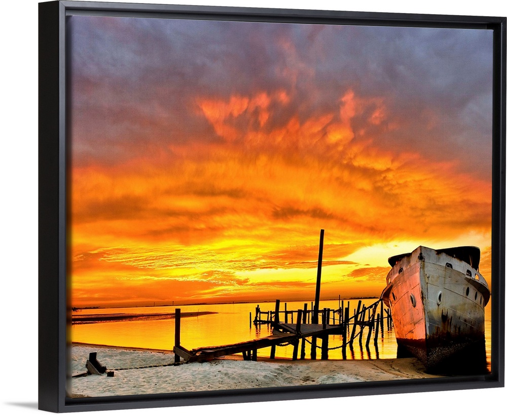 Life in Technicolor Landscapes Beaches Docks and Piers Seascapes Skyscapes Clouds Sunrise Orange Wall Art Photography United States Florida Eszra Tanner Transportation Boat