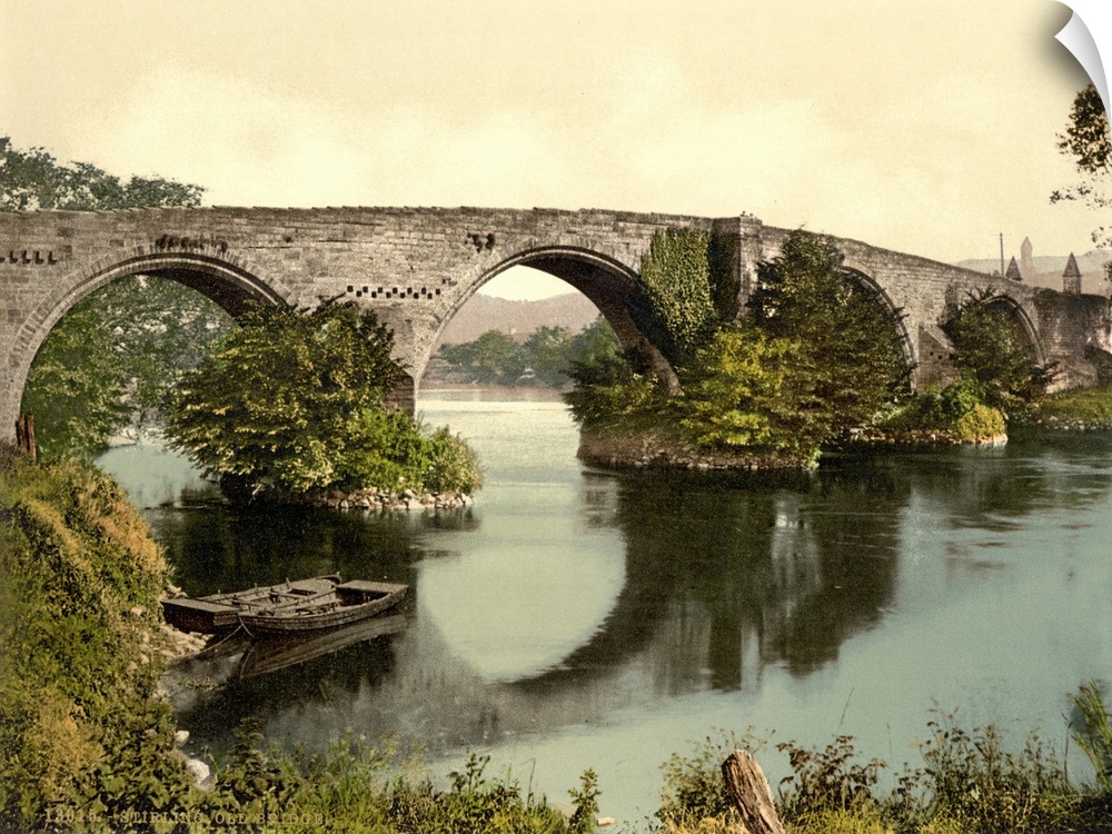 <p>Hand colored photograph of old bridge, Stirling, Scotland.</p>