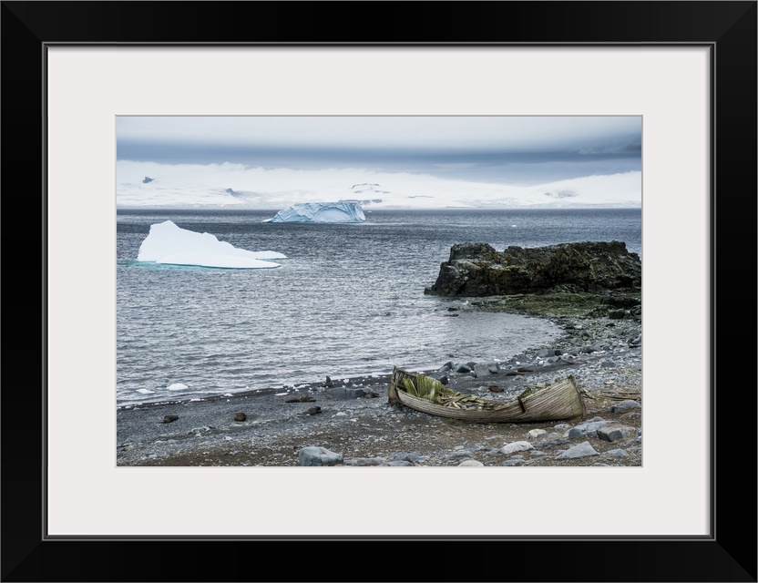 <p>Old cargo boat on the shores of Half Moon Island, South Shetland Islands, Antarctica, Polar Regions</p>