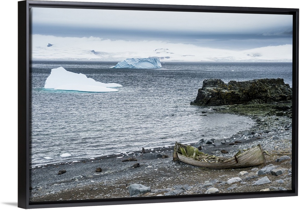 <p>Old cargo boat on the shores of Half Moon Island, South Shetland Islands, Antarctica, Polar Regions</p>