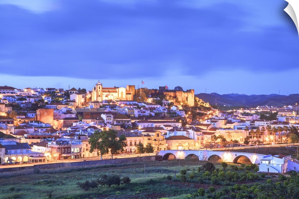 <p>Old Cathedral and Castle at Dusk, Silves, Western Algarve, Algarve, Portugal, Europe.</p>