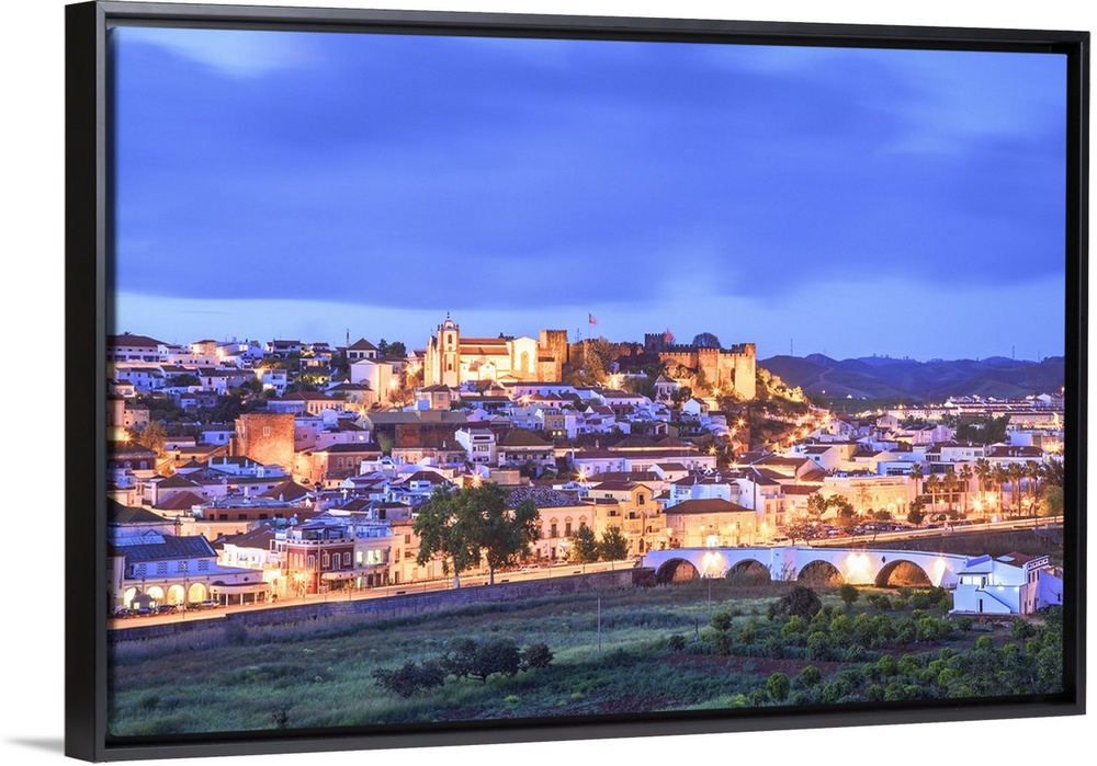 <p>Old Cathedral and Castle at Dusk, Silves, Western Algarve, Algarve, Portugal, Europe.</p>