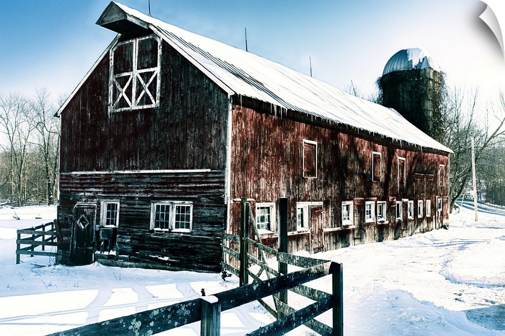 <p>Vintage Farm Building During Winter, Hunterdon County, New Jersey</p>