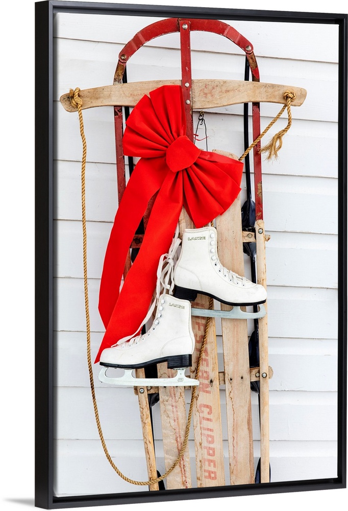 <p>Old fashioned sled with ice skates at Chico Hot Springs in winter in Pray, Montana, USA</p>