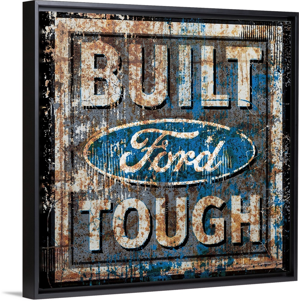 <p>A worn, distressed, cracked and rusty Ford Genuine Parts sign.</p>