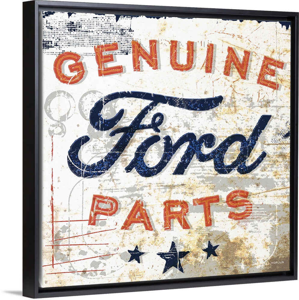 <p>A worn, distressed, cracked and rusty Ford Genuine Parts sign.</p>