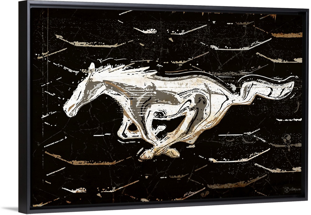 <p>A worn, distressed, cracked and rusty Ford running horse logo graphic.</p>