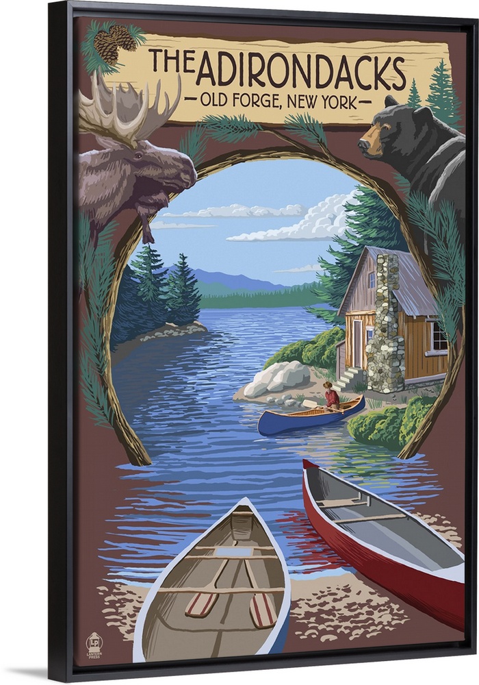 Art River, Creek and Stream Lantern Press New York Adirondacks Kayaking and Canoeing Travel Posters Retro Travel Posters