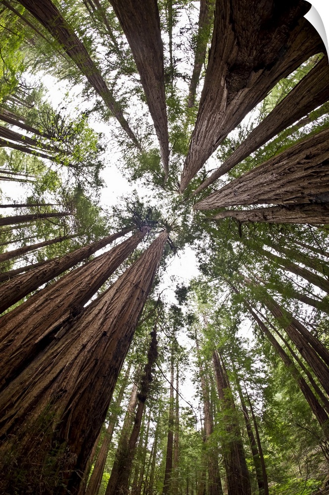 <p>Low angle view of the old growth trees and the sky in Muir Woods National Monument, Mount Tamalpais; California, United States of America.</p>