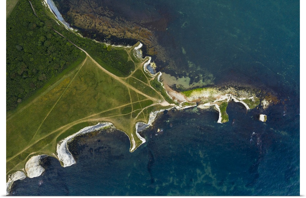 <p>Aerial view of Old Harry Rocks, Jurassic coast, Swanage, Isle of Purbeck, Dorset, England, UK</p>