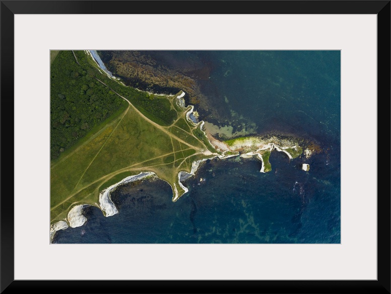 <p>Aerial view of Old Harry Rocks, Jurassic coast, Swanage, Isle of Purbeck, Dorset, England, UK</p>