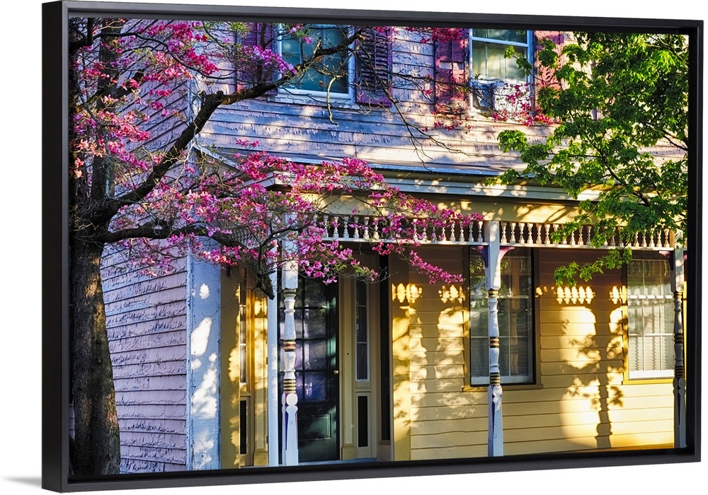 <p>Old House with a Blooming Pink Magnolia Tree, Hunterdon County, New Jersey.</p>