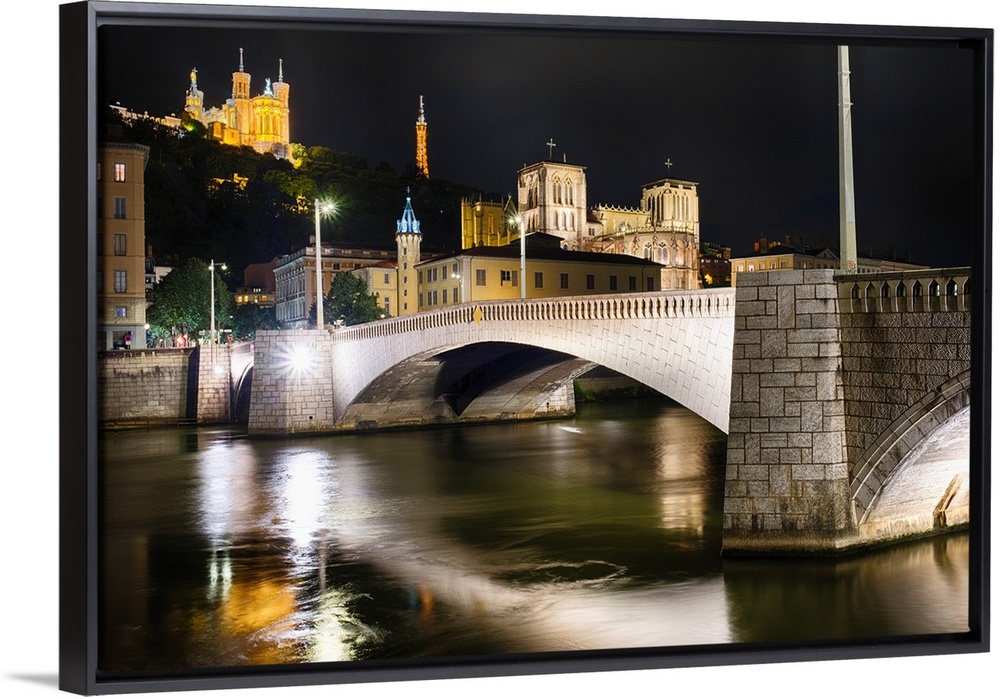 <p>Night View of the Bonaparte Bridge, with Old Lyon Skyine, Lyon, France</p>