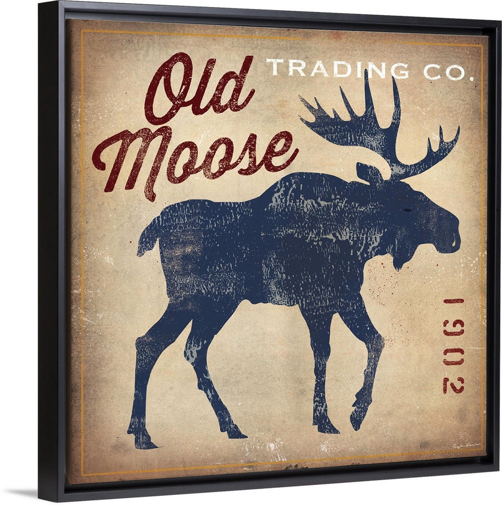 <p>Retro style sign for Old Moose Trading Company, with a blue moose silhouette.</p>
