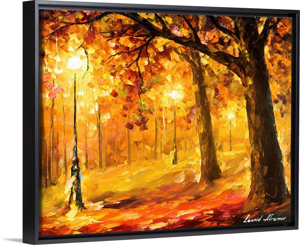 <p>Leonid Afremov was an extraordinarily prolific contemporary artist with a style all his own. His palette knife paintings depict people, cities, seascapes, gardens and animals in bold colors. Afremov’s love for brilliant colors may be cathartic, an affirmation that he had risen above the struggles and drudgery that plagued him early in his career in Russia and Israel. Afremov’s intricate and timeless paintings make spectacular canvas prints that will add a touch of sophistication and charm to any room.</p>
