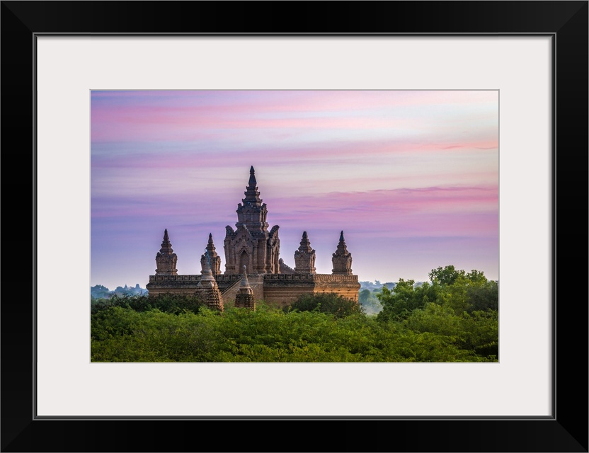 <p>Old pagoda amidst trees against purple sky during sunrise, Bagan, Mandalay Region, Myanmar</p>