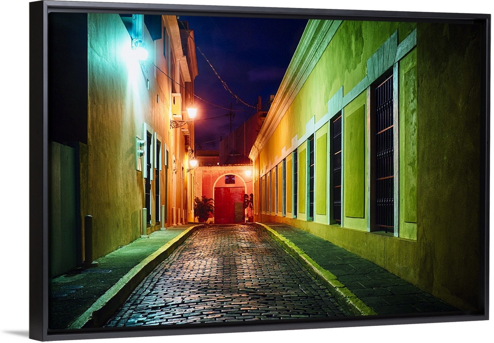 <p>Cobblestone Street in Night Illumination, Old San Juan, Puerto Rico</p>
