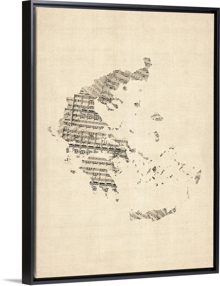 <p>Artistic map of the country Greece made from distressed sheet music.</p>