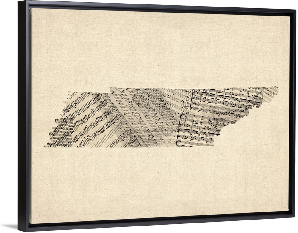 <p>State of Tennessee made of old sheet music against a weathered beige background.</p>
