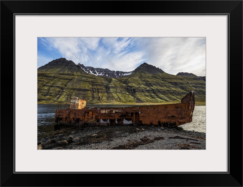 <p>Old Shipwreck Along The Water In Mjoifjordur, East Iceland, Iceland</p>